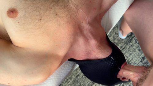 I think this might be the biggest load I have ever shot, all over Boy33’s chest, and then I finger-fed it to him.
